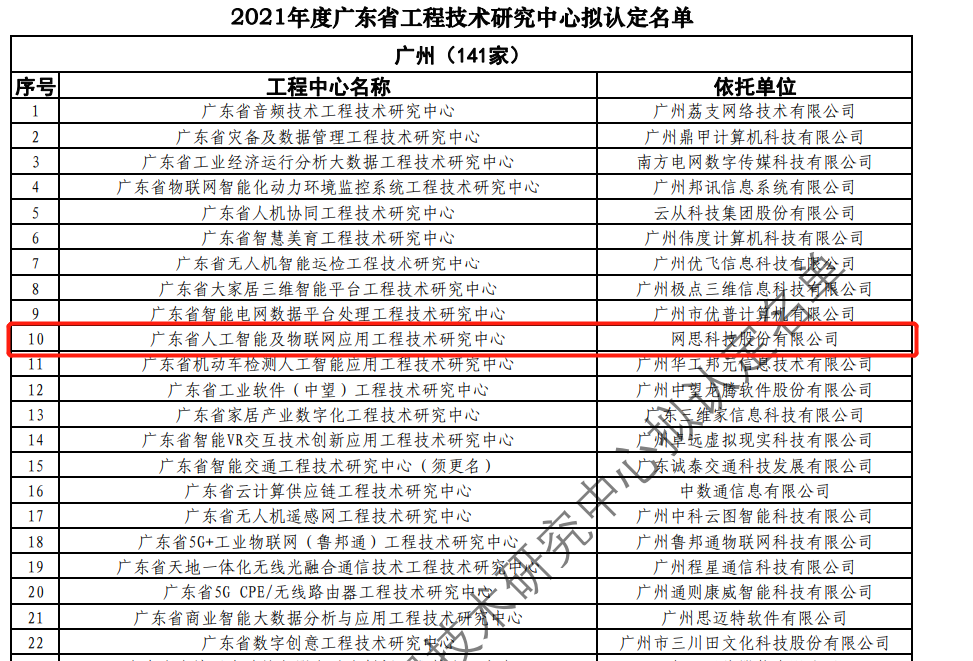 日前,广东省科技厅发布2021年度广东省工程技术研究中心名单。经过层层筛选、专家评审,依托世界杯竞猜手机在线官网-世界杯竞猜中国 建设的“广东省人工智能及物联网应用工程技术研究中心”榜上有名。广东省工程技术研究中心主要依托省内行业、领域具有科技实力的、拥有一定规模以上创新型企业建设,部分依托高校和科研院所组建。工程中心旨在